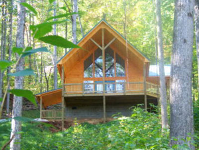 This chalet is one of our most attractive models. The high pitch roof and ceilings give it a large feeling. The wood floors and ceilings combined with a stone fireplace lend to mountain ambience. Constructed with two bedrooms and two full bathrooms, the Mountain Retreat is ideal as a vacation home or rental for two couples or a small family.